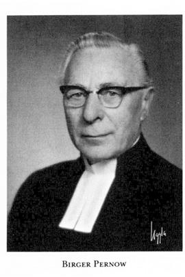 Pernow, Johannes Birger, f 24 juni 1888 i Matteröd, Krist, d 12 aug 1973 i Sthlm, Farsta. Föräldrar: hemmansägaren o kyrkvärden Bengt Persson o Christina Johansdtr. Studier vid Johannelunds missionsinst, Bromma, Sth, prästv för Luleå stift 31 maj 14, missiv till Burträsk, Dorotea o Åsele, samtl Vb, komminister där 11 aug 17 (tilltr 1 juni 19)–10 jan 23, pastor vid Blasieholmskyrkan i Sthlm 10 jan 23–30 sept 31, predikant vid Drottninghuset där 1 jan 28–31 dec 58, tf missionsförest (från 1937 med titeln missionsdirektor) för Sv Israelsmissionen (SIM) 1 dec 30, ord 1 sept 31–1 juli 60, led av Intern Israelsmissionsrådet 32, v ordf 35–47, ordf 47–53, led av Ekumeniska flyktingkomm 45–50, av Lutherska världsförb:s sv sektion 46–57.