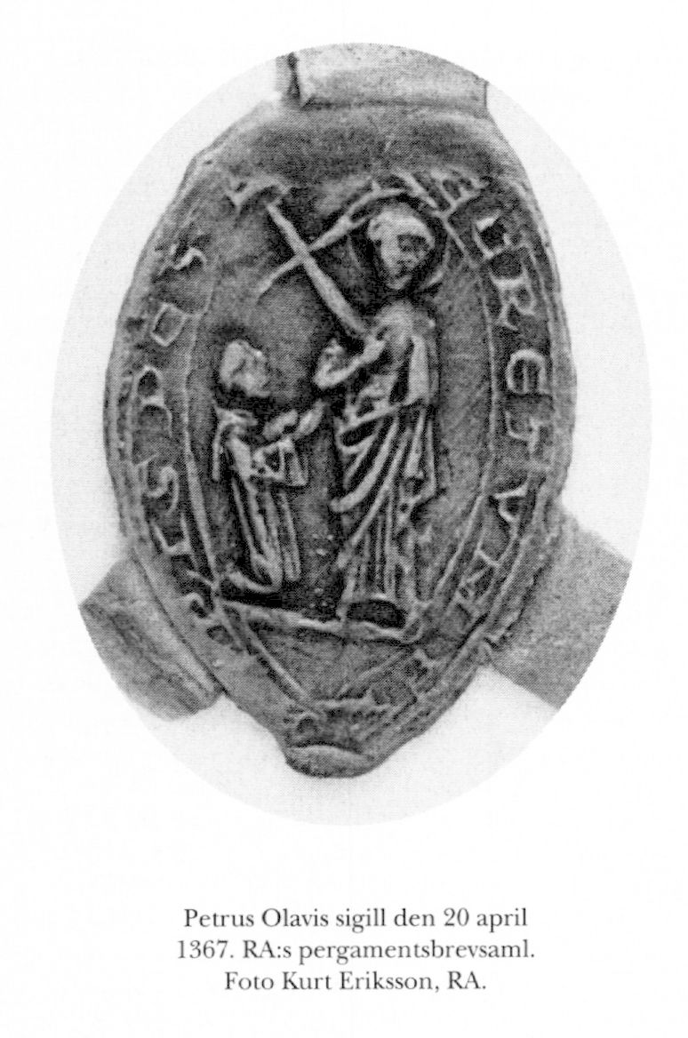 Petrus Olavi, f omkr 1307, d 9 april 1390 (Gejrot, s 122). Subprior o prior i Alvastra kloster, Västra Tollstad, Ög, Birgitta Birgersdtrs (bd 4) biktfader omkr 45–73, reste med biskop Hemming av Åbo (bd 18) till England, Frankrike o Rom någon gång mellan 46 o 49, reste med Birgitta till Italien o andra länder trol från början av 50-talet, trol åter prior i Alvastra från 74. Översättare, förf.