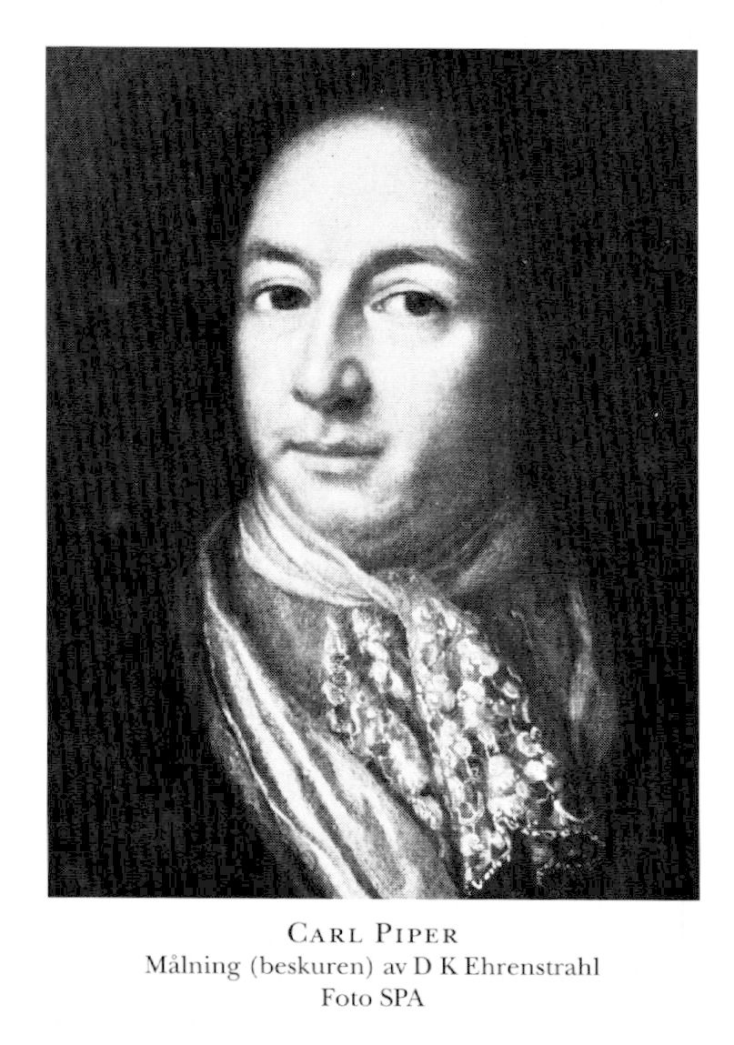 1 Piper, Carl, f 29 juli 1647 i Sthlm (Åkersteins o Marks v Würtenbergs geneal:er, RHA), d 29 maj 1716 på fästningen Schlüsselburg (Nöteborg) i Ingermanland. Föräldrar: kamreraren Carl P o Ingrid Ekenbom. Inskr vid UU okt 60, kopist vid K kansliet 27 maj 68, kanslist vid Gustaf Oxenstiernas (bd 28, s 477) ambassad till Ryssland 73, sekr vid Defensionsverket över Livland, Estland o Ingermanland 73, registrator vid fältkansliet i Skåne 15 jan 77, sekr i Kammarkoll 17 juni 79, adl 31 juli 79, kansliråd o statssekr i inrikes ärenden 14 mars 89, k statsråd 31 dec 97, frih och greve 3 jan 98, UU:s kansler 29 aug 02, överstemarskalk trol 9 okt 05, i rysk fångenskap från juni 09.