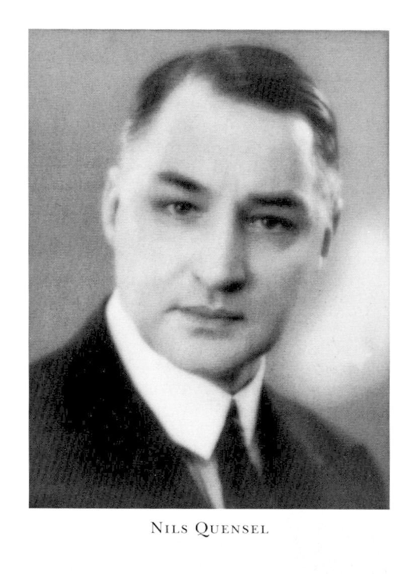 4 Quensel, Nils Jacob Eberhard, syssling till Q 3, f 22 okt 1894 i Sthlm, Ad Fredr, d 8 nov 1971 där, ibid. Föräldrar: justitierådet Olof Eberhard Carl Q o Anna Jönsson. Studentex vid H latinlärov å Norrmalm, Sthlm, 11 maj 12, inskr vid UU 30 aug 12, FK 29 maj 15, JK där 16 april 20, eo notarie i Svea hovrätt 23 april 20, tingstjänstg i Lindes domsaga 20–22, bitr fiskal i Svea hovrätt 6 nov 23, tf fiskal 24 aug 24, adjung led 26 juli 26, assessor 16 mars 28, allt i Svea hovrätt, lagstiftn:sakk inom Finansdep 8 dec 30, byråchef för lagärenden där 12 juni 31, exp:chef där 17 febr 33, sekr vid riksdagens särsk utsk 33, led av komm ang kreditgivn åt företag inom näringslivet jan–febr 34, av komm ang Bolidens gruvfyndigheter mars 34–jan 35, statssekr i Kommunikationsdep 18 maj (tilltr 1 juni) 34, led av statsdep:ens antagn:nämnd 34–36, av styr för ab Industrikredit 34, ordf där 51–52, hovrättsråd i Svea hovrätt 3 april 36, konsultativt statsråd 19 juni 36–11 okt 40 o 30 aug 43–31 okt 51, president i Kammarrätten 11 okt 40–61, v ordf i styr för ab Vin- o spritcentralen 40–43, ordf där 52–66, ordf i komm ang lag om vapenfria värnpliktiga aug 41–mars 42, i beskattn:organisationssakk sept 41–nov 42, i krigskonjunkturskatterådet 20 dec 40–7 okt 43, led av kyrkorådet i Adolf Fredriks förs, Sthlm, 43–46, ordf i 1951 års utredn ang Riksbankens sedelutgivn:rätt nov 51–nov 55, i Sv bibelsällsk från 51, i 1963 års bibelkomm febr 63–juni 68. – Serafimerriddare 15 nov 1949. – Ogift.