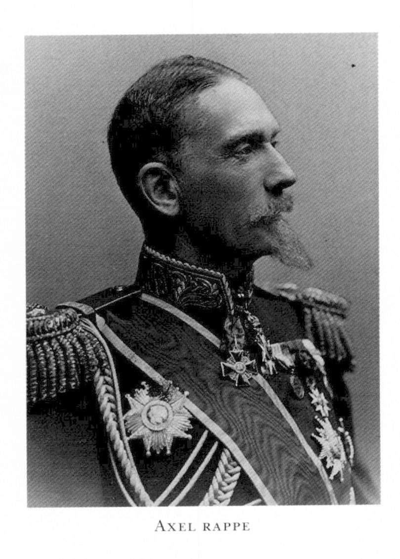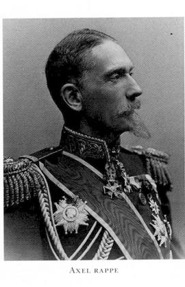 3 Rappe, Axel Emil, kusin till R 2, f 2 okt 1838 i Arby, Kalm, d 18 dec 1918 i Sthlm, Hedv El. Föräldrar: landshövdingen frih Axel Ludvig R o Lisette Emilia Augusta Björnstjerna. Elev vid Uppsala katedralskola, studentex vid UU 19 maj 57, inskr där 22 maj 57, kansliex där vt 60, underofficer vid Upplands reg 16 febr 58, officersex 5 o 8 mars 59, underlöjtn i Upplands reg 13 juli 59, vid reg 9 maj 60, elev vid H artillerilärov 63, löjtn 8 sept 63, generalstabsofficer 23 maj 65, deltog i riksdagen 1865–66, kapten i armén 29 dec 70, tjänstg vid franska armén 70–72, sekr i komm för granskn av 1875 års härordn:förslag okt 73–april 74, stabsadjutant o kapten vid Generalstaben 19 dec 73, lär i krigskonst o krigshist vid Krigshögskolan 73–79, överadjutant o major vid Generalstaben 4 dec 74, sekr i komm för granskn av förslag till övergång till ny härordn 74-mars 75, överstelöjtn o förste major vid Bohusläns reg 18 april 79, led av lantförsvarskomm juni 80–juni 82, tf chef för Bohusläns reg 4 febr 81, överste i armén 6 maj 81, överste o chef för Bohusläns reg 7 juli 82, tf chef för Generalstaben 14 juli 82, generalmajor o chef för Generalstaben 30 dec 85, led av styr för Evangeliska fosterlands-stiftelsen 87, v ordf 99, ordf där 06–18, led av komm ang granskning av inskriptionerna på arméns fanor o standar 88–april 92, av fältförvaltn- o etappreglementeskomm okt 88–91, av neutralitetskomm dec 88-maj 90, v ordf i Allm försvarsfören:s verkst utsk 90, led av komm för granskn av härordn:förslaget ("generalskomm") nov 90–mars 91, statsråd o chef för Lantförsvarsdep 22 juni 92–27 okt 99, generallöjtn i armén 2 dec 92, led av komm för besvarandet av K M:t:s frågor rörande en härorganisation enligt 1901 års sammanjämkn:förslag maj 01, general i armén 4 dec 03–23 dec 15 (i generalitetets reserv från 3 nov 05), led av utrustn:kommissionen 16 nov 05, ordf där 20 juli 06–15, ordf i komm ang trofésaml i Riddarholmskyrkan juni 06–febr 07, ombud vid allm kyrkomötena 08 o 09, led av styr för Karolinska förb från 10. – LKrVA 73 (styresman 91–92 o 09–10), HedLÖS 90, serafimerriddare 1 dec 04.