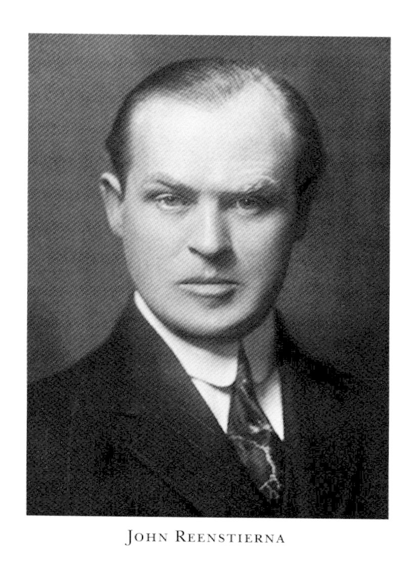5 Reenstierna, John Libert, kusinsonsonson till R 4, f 16 okt 1882 i Kristinehamn, d 18 juli 1956 i Sthlm, Hedv El. Föräldrar: verkmästaren Lars Magnus R o Anna Helena Maria Tidander. Mogenhetsex vid H a l i Karlstad 3 juni 01, inskr vid UU 2 sept 01, med fil ex 15 sept 02, MK där 30 nov 06, innehade amanuens- o assistenttjänster vid UU:s o KI:s patolog instit:er periodvis 06–11, assistent vid Statsmedicinska anstaltens bakteriologiska avd 16 juni 09–15 juni 10 o 1 jan 12–31 aug 15, laborator där 1 jan–31 dec 18, ML vid Kl 4 nov 11, disp vid UU 19 maj 13, MD där 31 maj 13, tf läk o tf prof vid KI:s syfilidologiska klinik periodvis 13–22, assistent o avd:läk vid Universitätsklinik für Haut- und Geschlechtskrankheiten, Breslau, 15 sept 15–18 okt 16, privatpraktiserande läk i hud- o könssjukdomar i Sthlm mars 15-juli 32, volontärläk vid Universitätsklinik für Syphilidologie und Dermatologie, Wien, 26 nov 16–26 mars 17, doc i dermatologi o syfilidologi vid Kl 26 juni 17–29 febr 32, förest för Sthlms stads norra poliklinik för könssjukdomar 1 jan 19–28 febr 31, prof:s n h o v 31 dec 24, förest för spetälskevården i riket 10 maj 26, statens serum- o vaccinkontrollant 1 juli 27–30 juni 33, prof i hygien o bakteriologi vid UU 31 mars (tilltr 14 april) 33–1 nov 47. – Ogift.