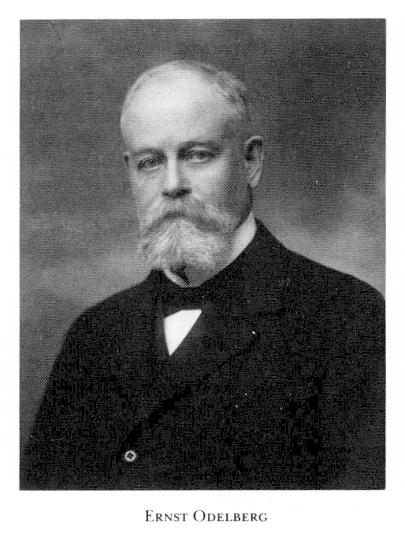 2 Odelberg, Ernst Erik Wilhelm, bror till O 1, f 20 jan 1861 i Västerås, d 9 febr 1939 i Djursholm. Elev vid Västerås h elementarlärov 71–75, elev o bokhållare vid Forssjö bruk, Söd, 75–80, vid Larsbo bruk, Kopp, 80–82, praktik vid Ludvigsbergs mek verkstad i Sthlm 82–83, vid Södra varvet där 83, smidesmästare vid Larsbo bruk 83–84, elev vid bergsskolan i Filipstad 84, avgångsex där 13 okt 85, verkmästare vid Svanå bruk, Vm, 85–86, verkmästare o överingenjör vid Lesjöfors bruk, Värml, 86–95, disponent vid Strömsnäs jernverks-ab i Degerfors, Ör, 20 juli (tilltr 1 okt) 95–maj 32, led av styr 96–36, ordf där 33–36, led av Örebro läns landsting 97–18, av styr för ab Träkol (från sept 29 Västerdalarnes fastighetsab) 98–29, för Tuolluvaara grufab 00–38, för ab Karlstads mek verkstad 05–36, ordf där 30–36, led av styr för Blombacka ab 11–30, VD vid ab Trollhättans elektriska masugn 12–29, led av styr för Oxelösunds järnverksab från 13, för Wermländska bergsmannafören 15–36, v ordf 16, ordf där 30-36, led av styr för Dalkarlsbergs ab 17–34, för ab Bofors-Gullspång (från maj 19 ab Bofors) från 17, för Järnbruksförb 18–33, v ordf där 24–33, led av kommunalfullm i Karlskoga 19–24 o i Degerfors 25–32, av styr för Stribergs grufveab 19–37, ordf där från 34, led av styr för Örebro tekn gymn från 20, för Persbergs grufve ab 22–37, för bergsskolan i Filipstad 22–28, ordf där o inspektor för skolan 30–38, led av järnvägsrådet 28–37, fullm i Jernkontoret 30–38, ordf där 32–36, dessutom bl a ordf i styr för Metallografiska inst. – Jernkontorets stora GM 25. – Ogift.