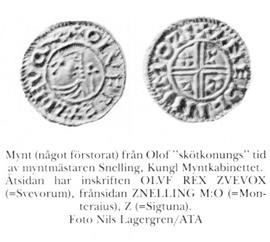 Adam av Bremen (1948); Adam von Bremen, Hamburgische Kirchengeschichte (1917); N Ahnlund, Intill 1537 (Jämtlands o Härjedalens hist, 1, 1948), s 61 f o 68; dens, Sthlms hist före Gustav Vasa (1953); dens, Tiden före 1560 (Den sv utrikespolitikens hist, 1:1, 1956); S-E Ander, L Gahrn o V Lindblom, Sveriges födelse (1984); T J Afrne], Ett 0:s mynt i Estland (Fornv 1927); S Axelson, Sverige i utländsk, annalistik 900- 1400 (1955), s 39 o 45–48; dens, Sverige i dansk annalistik 900 -1400 (1956), s 34 f; B Beckman, Biskop Osmund ännu en gång (KA 1970), s 90 f; N Beckman, Hvem har döpt O? (KÅ 1910); dens, Ur vår äldsta bok (1912), s 29 o 47–50; dens, Sveriges äldsta kristna konungalängd (PHT 1914); dens, Torgny lagman (Edda, 9, 1918), s 281–284; dens, Vägar o städer i medeltidens Västergötland (1923), s 86; G Behre, Sv rikets uppkomst (1968), s 24 f o 38; H Berg, Tiden fram till 1523 (Växjö stads hist, 1, 1956); W Biereye, Beiträgc zur Gcschichte Nordalbingiens im 10 Jahrhundert(1909),s 128; O Bjurling, Peterspenningen i de uppländska folklanden (Technica Sc humaniora. Festskr till Anders Nevsten 1885 18/3 1950, 1951), s 45 f; S Bolin, Om Nordens äldsta historieforskn (1931), s 143, 148 f, 151 f, 162, 169, 172, 176, 190 o 197; dens [sign B], Olof Skötkonung eller Skotkonung (Sv uppslagsbok, 21, 1952); dens, Erik Segersäll (SBL 14, 1953); Y Brilioth, Den påfliga beskattn af Sverige intill den stora schismen (1915), s 3 f; G Carlsson, rec av Brilioth, a a (HT 1917), s 45-48; dens, Sigrid Storråda o Sigridlev (PHT 1957); dens, Sigrid Storrådas söner (ibid); S Carlsson, Snorre Sturlason som genealog (SoH 1973), s 275-280; dens, Västgötarnas plats i Sveriges äldre hist (PHT 1986); H Cornell, Sigtuna o Gamla Uppsala. Ett bidr till kännedomen om de engelsk-sv förbindelserna under 1000-talet (1920), s 93 f o 97 f; Ö Einarsdöttir, Studier i kronologisk metode (1964); S Eliehoj, Studier over den aeldste norr0ne historieskrivning (1965); P Fahlbeck, Den s k striden mellan svear o götar, dess verkliga karaktär o orsaker (HT 1884), s 116; H Fleetwood, Kronorna i sv riksvapnet (PHT 1943); A Frieden-thal, Der Miinzfund von Pörafer (Zeitschrift fiir Numismatik, 36, 1926); O v Friesen, Om staden Sigtunas ålder o uppkomst (UFT 9, 1922-24), s 37, 40 f, 51 f o 54; dens, Fredsförhandharna mellan O o Olav Haraldsson (HT 1942); dens, En sv-norsk fredsuppgörelse för snart tusen år sedan (NT 1942); L Gahrn, Sveariket i källor o historie-skrivn (1988); dens, Bland svear o götar (1989); G Galster, Olav Skatkonges M0nt (Numism medd:n 28, 1935); E Gamby, Skötkonung-Skattkonung-Myntkonung (Myntkontakt. Sv numism tidskr 1985); dens, O, Sven Tveskägg o Ethelred den Rådville (Sc 1990); dens, Vem var Aacuneignvn-dei (Sv numism tidskr 1990); dens, Onlaf rex Nor-mannorum (Nord numism unions medlemsbl 1990); dens, Replik till Ove Moberg (Sc 1991); dens, Olafa Rex Ancol (Sv numism tidskr 1991); W Giesebrecht, Geschichte der deutschen Kaiser-zeit, 2 (1858), s 196 o 604; H Gillingstam, Utomnord o nord i de äldsta sv dynastiska förbindelserna (PHT 1982); B Gudmundsson, Gotalands politiske stilling fra 950 til 1050 (NHT 5:6, 1927); P Hauberg, Myntforhold og Udmyntninger i Danmark indtil 1146 (1900), s 42 ff; Heiöreks saga. Hervarar saga ok Heiöreks konungs (1924); J A Hellström, Biskop o landskapssamhälle i tidig sv medeltid (1971), s 20 o 46 ff; F Herschend, What Olof bad in mind (Fornv 1992); B Hildebrand, CJ Thomsen o hans lärda förbindelser i Sverige 1816–37, 1–2 (1937–38); H Hildebrand, Sveriges medeltid, 1-4 (1879–1953); dens, S:t Sigfrid o hans mission (HT 1891); dens, Medeltiden (Sveriges hist intill tjugonde seklet, 2, 1905), s 71 -84; Å Hyenstrand, Sverige 989 (1989), s 16, 19 o 40; N Höjer, Olof Skottkonungs dop (HT 1913); O Janse, Sigtuna stads grundläggn o stadens betydelse under medeltiden (Gamla sv städer, 5, 1916), s III f; H Johansson, Skara stift 950 år (Julhälsnrar till församharna i Skara stift 1964), s 9 f, 12–16, 19–25 o 27-31; dens, Skara som stiftsstad (Skara, 1, 1986); O A Johnsen, Frid-gerdar-saga (NHT 5:3, 1916); K Jonsson, Övergångskedet mellan vikingatiden o medeltiden o uppkomsten av den medeltida myntn i Sverige ca 1050-1200 (hikuin, 11, 1985); S Kjöllerström, Sankt Sigfrid, Sigfridslegenden o Växjö stift (KA 1980); dens, Sigfridslegenden (HVL. Scripta minora 1980-81, 1982), s 7 f, 19 f o 30 ff; K Kumlien, Sveriges kristnande i slutskedet – spörsmål om vittnesbörd o verklighet (HT 1962), s 256 f, 259 f o 292; L Lagerqvist, 0:s Sceat-Miinze (Dona nvmismatica Walter Hävernick zum 23 Januar 1965 dargebracht, 1965); dens, Sv mynt under vikingatid o medeltid... (1970); dens, Sverige o dess regenter under 1000 år (1976); dens, svar i fråge-spalten (Myntkontakt. Sv numism tidskr 1982, s 125–128); dens, Sensation igen i Sigtuna! (Sv numism tidskr 1990 o Nord numism unions medlemsblad 1990); dens o E Na-thorst-Böös, Mynt o medaljer o annan numismatik (1960), s 105-109; des, Mynt, sedlar o medaljer (1981); G Larsson, S:ta Birgittas källa i Finsta – en bortglömd offerkälla (Ledungen 1988, nr 4); L-O Larsson, Det medeltida Värend (1964); dens, Hist om Småland (1974), s 70, 72 o 80; dens, Den helige Sigfrid o Växjöstiftets äldsta hist (KA 1982), s 69, 71 f, 74, 78 o 82 f; dens, Växjö genom 1000 år (1991); M G Larsson, Ett ödesdigert vikingatåg (1990); V E Lilienberg, 0:s mynt (Numism medd:n, 19, 1910); T Lindkvist, Plundring, skatter o den feodala statens framväxt (1988), s 6, 34 o 59 f; dens o K Ågren, Sveriges medeltid (1985); I Lindquist, Västgötalagens litterära bilagor (1941), s 40 o 61; S Lindqvist, Den helige Eskils biskopsdöme (Antikvarisk tidskr för Sverige, 22:1, 1917–24), s 9, 55, 155 f o 168; dens, Forngutniska altaren o därtill knutna studier (HVUA 1960–62), s 93, 95 o 118 f; H Ljungberg, Den nord religionen o kristendomen (1938), s 206, 243–247 o 265; dens, Hur kristendomen ko