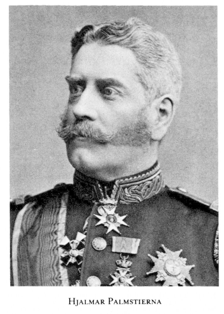 4 Palmstierna, Nils Axel Hjalmar, son till P 3, f 31 mars 1836 i Sthlm, Klara, d 21 febr 1909 där, Engelbr. Kadett vid Krigsakad på Karlberg 3 dec 49, officersex 11 okt 54, underlöjtn vid Vendes art:reg 9 nov 54, inträdesex vid H art:lärov å Marieberg 16 maj 57, slutex 28 mars 60, repetitör 60—61, lär 64—65, allt vid H arf.lärov, löjtn vid Vendes art:reg 23 april 61, art:stabsofficer där 61—70, sekr i art:komm okt 63—febr 65, ordonnansofficer hos hertigen av Östergötland 1 okt 65, guvernör hos denne 65—68, deltog i riksdagen 65—66, led av AK 88—90, av FK från 00 (led av första särsk utsk 01, av tillf utsk 02, av statsutsk 03—05 lagt, 06—07, av särsk utsk 051 urt—05 2 urt, av talmanskonf 09), kapten i Vendes art:reg 2 sept 69, adjutant hos hertigen av Östergötland 21 okt 69, hos konungen 21 okt 72, överadjutant där 1 dec 85—07, kapten vid Vendes art:reg 2 dec 70, lär vid Krigsakad 70—73, major i armén 28 nov 73, chef för art:staben 73—83, major vid Göta art:reg 22 sept 76, led av svensk-norska art:komm juli—okt 78, av stadsfullm i Sthlm 79—83, överstelöjtn i armén 4 juli 79, överste där 22 dec 82, generalintendent o chef för Arméförvaltn:ens intendentsdep 26 febr 83, ordf i komm ang reglemente för sjukvården i fält okt 86—mars 88, generalmajor i armén 14 jan 87, ordf i komm ang statens upphandl- o entreprenadväsende juni 87—febr 88, statsråd o chef för Lantförsvarsdep 6 febr 88—22 juni 92, avsked från generalitetet med tillstånd att kvarstå i reserven 22 juni 92, landsh i Jönköpings län 22 juni 92—5 okt 06, ordf i styr för Sv mosskulturfören 98—06, i komm ang försäljn av bl a norra Djurgården april 02—maj 03, led av komm ang organisationen av arméns centrala förvaltn:myndighet dec 06—mars 07, ordf i kasernbyggnadskommissionen inom andra arméfördeln juli—okt 06, led av försvarskomm från sept 07, ordf i riddarhusdir från 08, i komm ang reservstater vid armén o marinen från nov 08. — LKrVA 71, LLA 05, serafimerriddare 6 juni 07.
