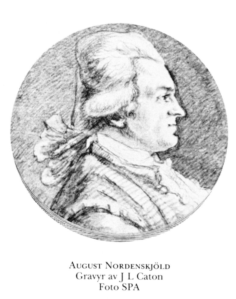 2 Nordenskjöld, August, bror till N 1, f 6 febr 1754 i Sibbo, Nyland, d 10 febr 1792 i Freetown, Sierra Leone (Sv biogr lex). Inskr vid Åbo akad 15 okt 70, försvarade en avh i mineralogi 6 juli 72, genomgick förhör i "lagfarenheten o dess grundvetenskaper" 28 sept 72, erhöll akad testimonium 12 okt 72, allt vid Åbo akad, auskultant i bergskoll 3 febr 73, eo kanslist där 1 mars 73, förordn att ha tillsyn över arbetet vid Slädekärrs o Nötö silver- o koppargruvor, Tösse o Tydje, Älvsb, 5 juli 73, geschworner i bergskoll senast april 76, proberare där 11 mars 78–maj 82 (tjänstl från juni 79; k beslut 21 maj 79 o 3 april 82), bergshauptman i Finland med survivance på lönen efter bergmästaren Magnus Linder (bd 23, s 392) 18 maj 82, medarb i Aftonbladet 84. Mineralog, alkemist.