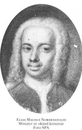 Nordenstolpe, Elias Magnus, före adl Ingman, f 7 (Genealogica 117) eller 14 (Olsson) nov 1704 i Karis (SMoK), Nyland, d 23 jan (bouppt) 1773 i Sthlm, Klara. Föräldrar: kronofogden Anders Ingman (bd 20, s 21) o Catharina Streng. Eo kammarskrivare i kammarkoll 25, kamrerare hos kanslipresidenten A Horn (bd 19) 28, likvidationskommmissarie i Sthlm 22 nov 34, kamrerare hos riksrådet O Törnflycht 34, anställd vid kammarrevisionen 20 april 36, kassör i rikets ständers bank 13 juli 38, assessor i kammarrevisionen 14 nov 47, disponent vid Rörstrands porslinsfabrik 52–72, adl 24 nov 58 (sönerna introd 73), kammarrevisionsråd från 10 aug 62.