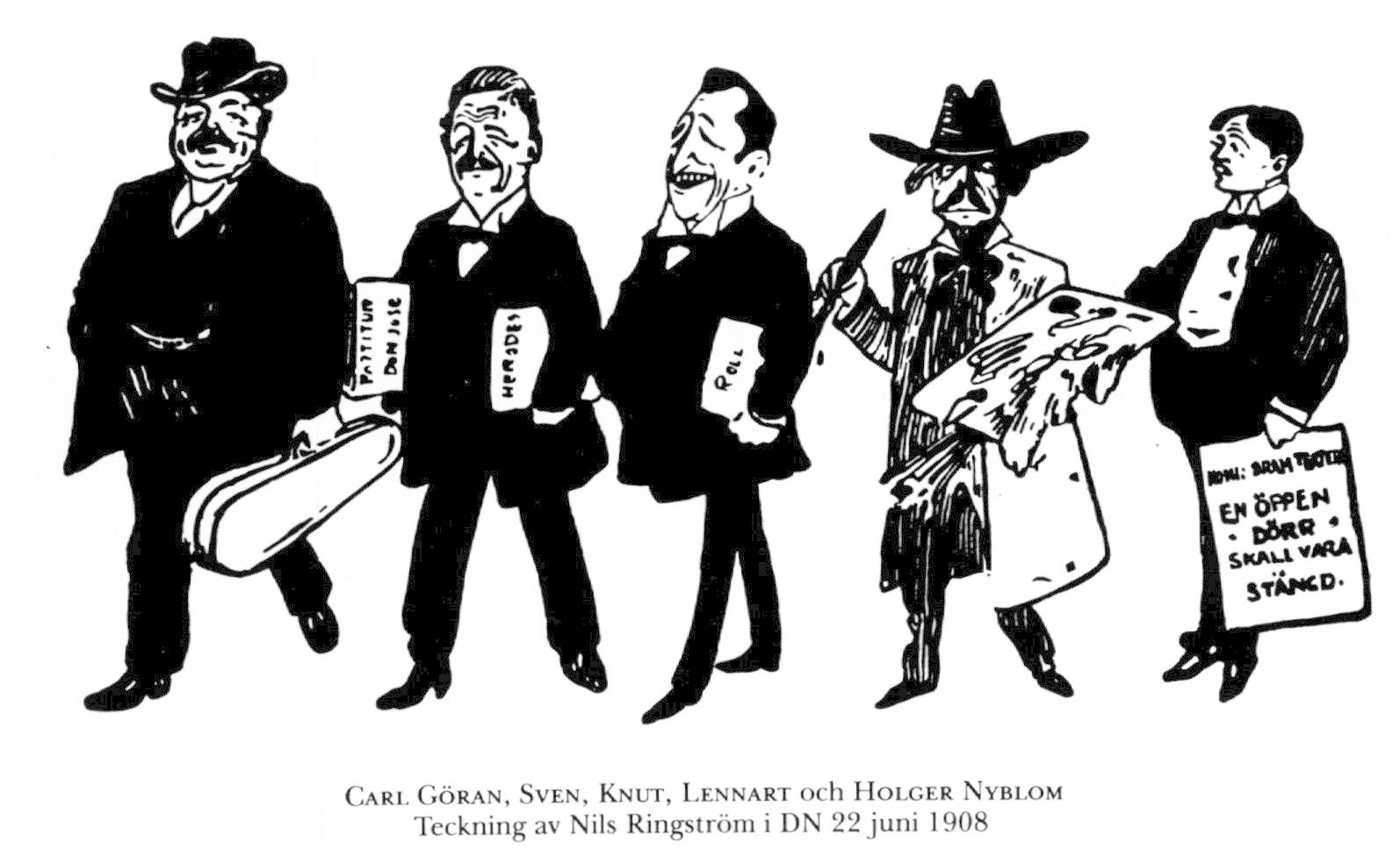 Carl Göran, Sven, Knut och Holger N:s samt N 3:s bror Thure Lennart N (1872–1947), vilken liksom modern konverterade till katolicismen, var verksam som målare, etsare och tecknare. I äktenskap med målaren, tecknaren och textilkonstnären Olga Maria N, f Lundberg (1872-1955), var Lennart N far till sångaren Hildegard (Hilde) N (f 1908), som 1940 gifte sig med sedermera teaterchefen Rurik Artur Ekroos (1902–77) i Hfors. Bror till henne var inredningsarkitekten Peder Mario Antonius N (1902–81). Barn till Peder N är journalisten, sedermera avdelningsdirektören vid Försvarshögskolan Kåre N (f 1928), som 1958–64 var gift med journalisten Birgitta N, f Marmolin (f 1921), och skådespelaren, sedermera TV-producenten Ragna N (f 1932), 1955–60 gift med Dr phil Donald John Blake.