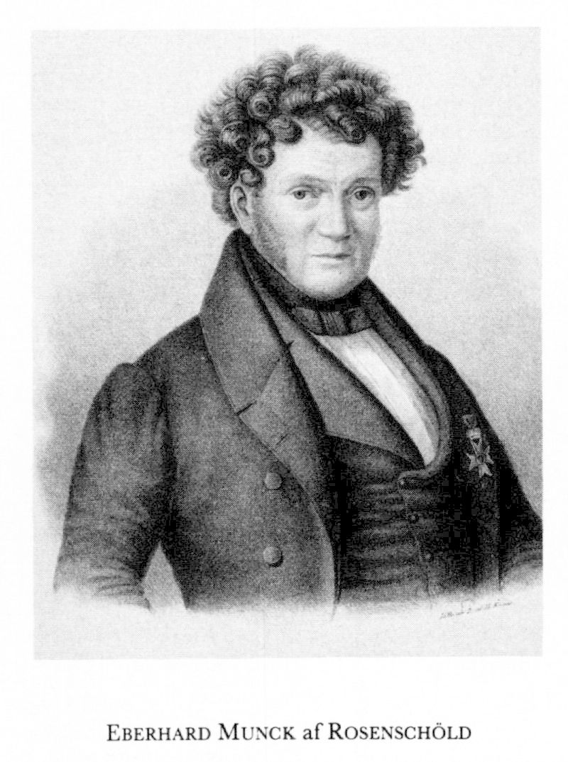 2 Munck af Rosenschöld, Eberhard Zacharias, före adl Munck, son till M 1 i hans andra g, f 3 aug 1775 i Lund, d 17 maj 1840 i Khvn (enl db för Lund). Inskr vid LU 22 jan 76, ex theologicum 89, ex stili pro gradu vt 91, ex philosophicum ht 91, allt vid LU, studier vid Det Kgl Frederiks hospital o vid univ i Khvn aug 92–april 93, disp pro gradu vid LU 5 juni 93, mag 21 juni 93, ex medicum vt 94, disp under J H Engelharts (bd 13) presidium vt 94, MD 12 juni 94, adjunkt vid med fak 15 nov 94, allt vid LU, led av collegium medicum 21 mars 96, adl 16 nov 99, deltog i riksdagarna 00, 10 urt, 12 urt, 15 urt, 17–18 urt, 23, 28–30 o 34–35 urt (led av KU 15 urt, 17–18 urt o 23, av förstärkta statsutsk o förstärkta allm besvärs- o ekonomiutsk 15 urt, av första särsk utsk 17–18 urt, av förstärkta statsutsk o förstärkta stats- o banko-utsk 28–30), kir mag i Sthlm 17 maj 00, tf prof i prakt medicin vid LU vt o ht 02 (konstit 12 jan 02), prof i teor medicin vid LU från 19 sept 05 (tjänstl 27–28 o från 7 nov 32), ord intendent vid Ramlösa brunn 16 aug 08, intendent o läkare vid alla bad- o brunnsinrättn:ar vid Helsingborg 10 sept 10, rektor vid LU juni 12–juni 13 o juni 25—juni 26, biträdde sundhetskoll vid utarb av förslag ang ökad vaccination mot koppor 16. – LPS 01, PS:s medalj 01, HedL av collegium medicum 15 juli 12, K M:ts vaccinationsmedalj i guld 12 jan 14, LFS 15, LVA 17. – Ogift.