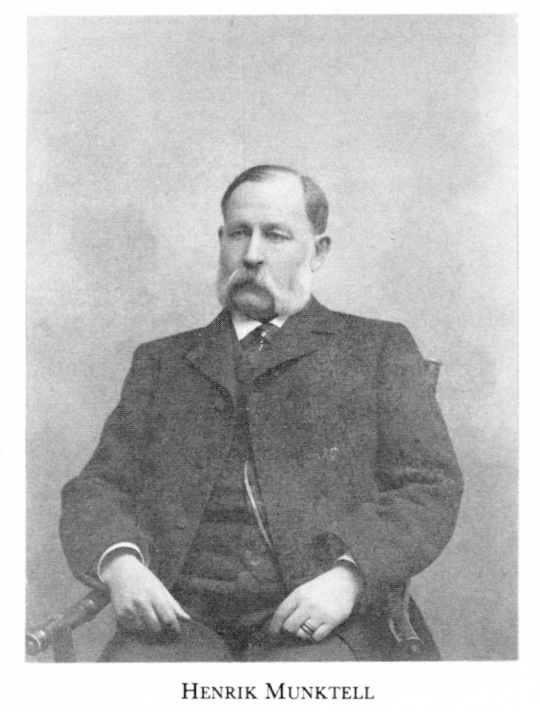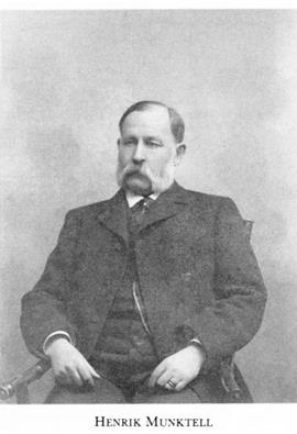 4 Munktell, Henrik, son till M 2, f 20 aug 1841 i Stora Kopparberg, Kopp, d 21 febr 1906 där. Lärov.studier i Falun 53—60, inskr vid UU vt 61—ht 67, deläg i Harmsarvs gruva 64, anställd vid Sågmyra nickelbruk 65, förest för gruvorna o tillverkn 69—72, hytting vid Falu kopparverk 72, hyttförest där 74— 87, led av stadsfullm i Falun 85—88, disponent vid J H Munktells pappersfabriks ab 87, (bolagsordn 18 nov), led av Kopparbergs läns landsting 93—05, av styr för Sv pappersbruksfören från 98.