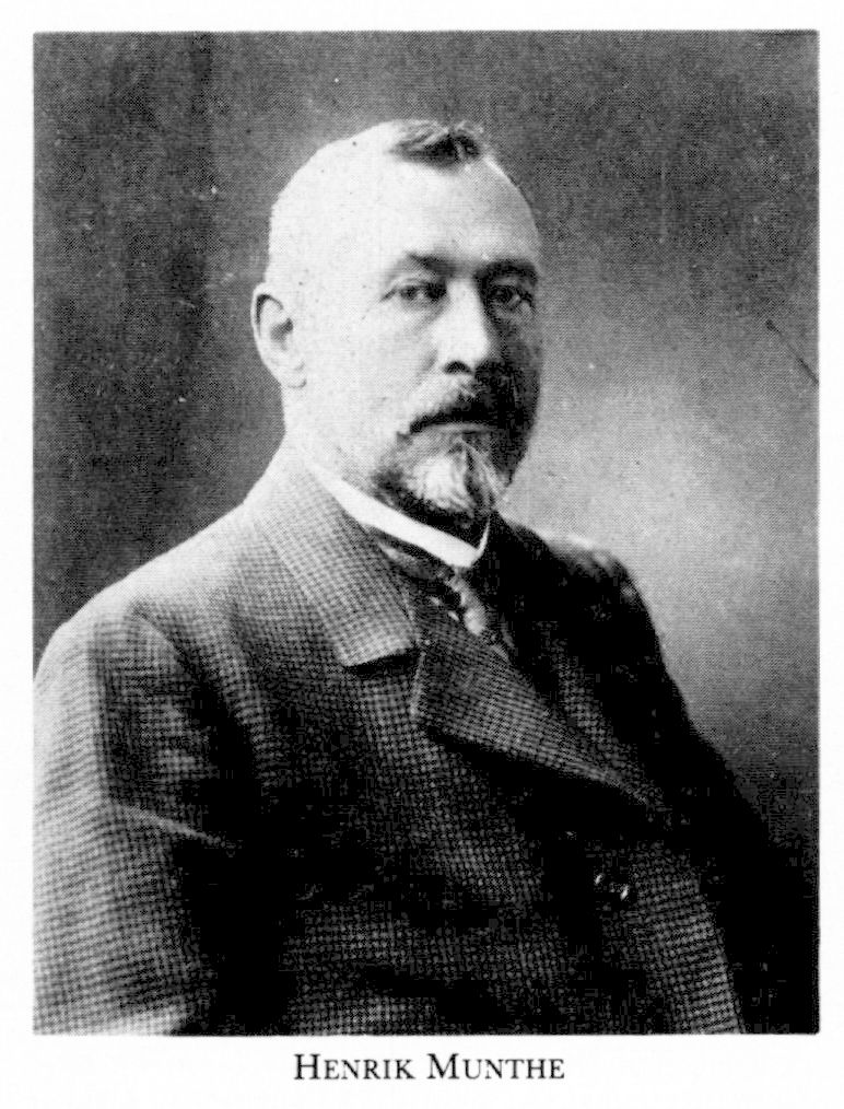 7 Munthe, Henrik Vilhelm, brorsons son till M 2, f 1 nov 1860 i När, Gotl, d 15 aug 1958 i Sthlm, Osc. Föräldrar: handlanden Johan Magnus M o Elisabeth Charlotta Mathilda Klintberg. Mogenhetsex vid Visby h a l 13 juni 82, inskr vid UU 15 sept 82, FK 14 sept 85, FL 29 maj 89, amanuens vid mineral geolog instit 1 jan 90—1 sept 98, disp 18 maj 92, FD 31 maj 92, doc i geologi 27 juni 92—19 maj 00 (tjänstl från ht 98), tf prof i geologi o mineralogi periodvis sept 92—febr 97 varav sammanhängande från jan 95, allt vid UU, extra geolog vid Sveriges geol undersökn (SGU) somrarna 96 o 97, bitr geolog 1 april 98, vik geolog 19 dec 98, ord geolog 4 maj 99, statsgeolog 31 dec 14-30 juni 26, allt vid SGU, sekr i Geolog fören i Sthlm o red för fören:s förhandhar jan 04—13, prof:s namn 28 sept 17. — VA:s Letterstedtska pris 11, LVA 28, HedL av bl a Sv naturskyddsfören 34.