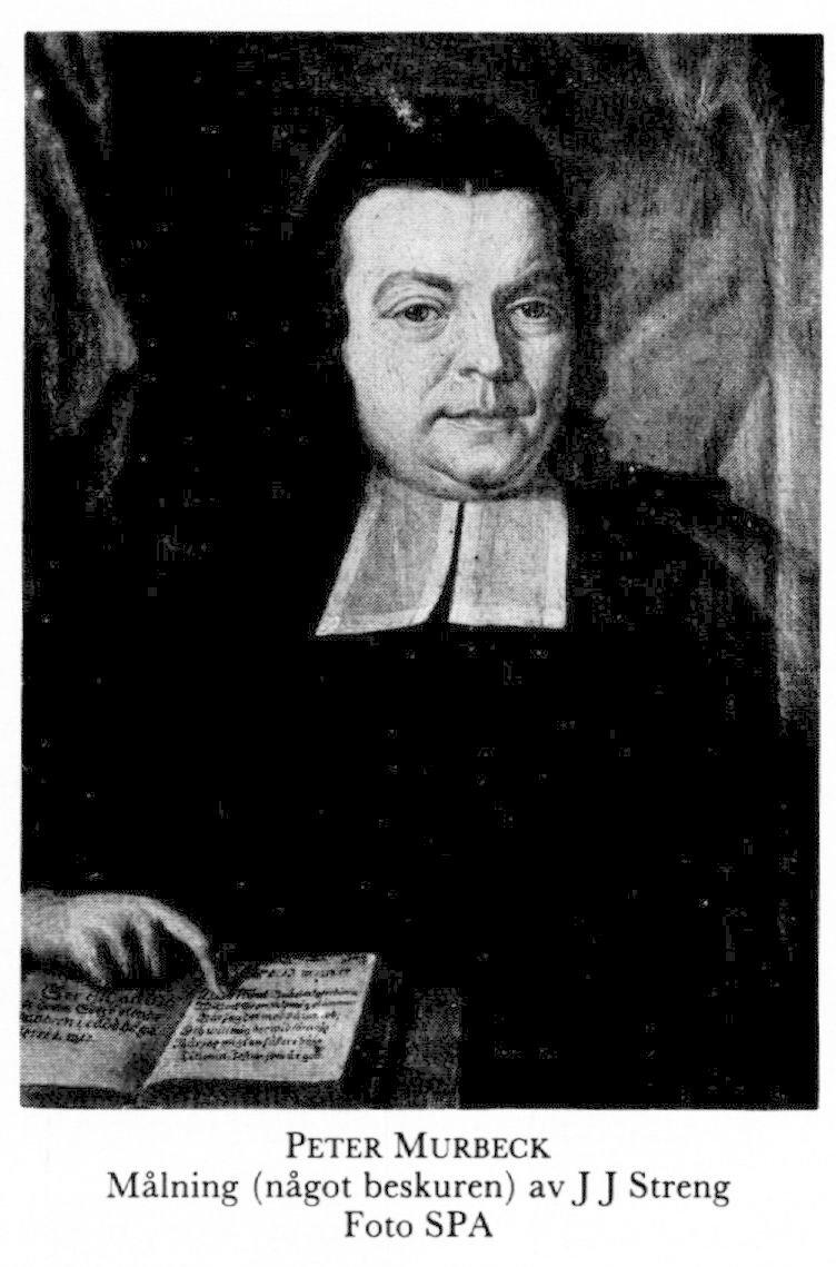 Murbeck, Peter, f 25 april 1708 i Karlskrona, Ty, d 8 dec 1766 i Fridlevstad, Blek. Föräldrar: smeden Jöns M o Maria Sporselia. Studier för kh i Tyska förs i Karlskrona J F Franck, inskr vid LU 24 maj 23, prästv i Lund 3 juni 31, pastorsadjunkt hos kh L Biitzow i Caroli förs i Malmö o hans prebendeförs:ar Bjärshög o Oxie, Malm, komministeradjunkt i S:t Petri förs i Malmö 1 maj 33, pastorsadjunkt hos prosten J Rönbäck i Helsingborg o annexförs:arna Välluv o Raus, Malm, 1 april 36—38, nådårspräst o v pastor i Hässlunda o Katslösa, Malm, 1 okt 38, suspenderad av Lunds domkap för förseelser vid ämbetsutövn 21 april 41—25 april 46, huspräst o informator hos majorskan M C Cedercrantz på Gedsholm i Ekeby, Malm, 25 jan 41, sv högmässopredikant vid Finska förs i Sthlm 6 juli 46, pastorsadjunkt i Jakobs o Johannes förs 20 okt 47—50, komminister i Hedvig Eleonora förs 15 dec 49 (tilltr 1 maj 50), pastoralex 8 aug 60, allt i Sthlm, kh i Fridlevstad o Rödeby från 4 febr (tilltr 1 maj) 61.