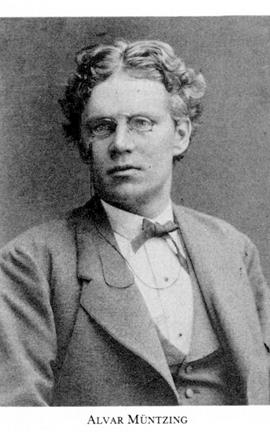 1 Müntzing, Alvar, f 29 dec 1848 i Lerbäck, Ör, d 22 aug 1917 i Varberg (skriven i Ad Fredr, Sthlm). Föräldrar: komministern Gustaf Wilhelm M o Johanna Sköldberg. Elev vid Tekn elementarskolan i Örebro ht 64, avgångsex där 5 juni 67, kemist vid Sörkvarns fabriker, Kolbäck o Svedvi, Vm, 67—69, elev vid Inedals sockerbruk, Sthlm, 69, verkmästare där 70—72, fabriksförest där 72—76, disponent vid Gustavsfors pappersbruk, Floda, Söd, 77—79, fabriksförest vid Munksjö pappersbruk (från okt 90 Munksjö ab), Jönköping, aug 79—93, led av styr för Munksjö ab 91-96, VD där 93-96, ordf i styr för Jönköpings arbetarefören 84, led av stadsfullm i Jönköping 1 jan 91 — 12 okt 96, av styr för Sv pappersbruksfören 93, sekr där nov 05—mars 17, byggde o igångsatte Thimsfors pappersbruk, Markaryd, Kron, 97, VD för Thimsfors ab 97 (bolagsordn 6 nov 96)-30 juni 02, konsult ing o inneh av Sv pappersbyrån, Sthlm, från 02, huvudred för Sv papperstidn 03—17, förest för Sv pappersfören:s anmärkn:byrå 05—09, sekr i Sveriges pappersgrosshandl:fören från 06, VD i ab Müntzings cellulosapatenter från mars 11.