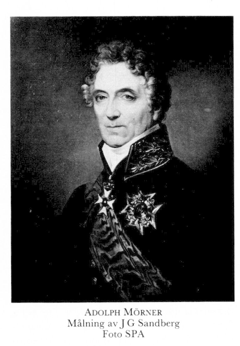 10 Mörner, Adolph Göran, f 27 juli 1773 i Rinkaby, Ör, d 30jan 1838 i Sthlm, Hedv El. Föräldrar: hovmarskalken greve Carl Gabriel M o frih Lovisa Ulrika Horn (af Rantzien). Fänrik vid Svea livg 10 maj 82–30 april 96, kammarjunkare hos konungen 26 sept 83, inskr vid UU 29 okt 88, kansliex där 10 juni 91, eo kanslist i kammarexp 12 juni 92, kopist där 3 juli 93, kavaljer vid beskickn i Wien 2 ckt 93, ambassadsekr i Khvn 1 okt 95, andre sekr i kabinettet för utrikes brevväxl 22 jan 96–juni 00, kavaljer hos hertiginnan av Södermanland nov 96–juni 00, deltog i riksdagarna 00, 09–10, 10urt, 12urt, 15urt, 17–18urt, 23, 28–30, 34-35 (led av statsutsk 09–10, KU 09–12, förstärkta besvärs- o ekonomiutsk 09–10, särsk utsk 10, heml utsk o förstärkta statsutsk 12, åter kavaljer hos hertiginnan 02, kammarherre hos Hedvig Elisabeth Charlotta 6 juni 09, led av 1812 års uppfostringskomm jan 12–april 17, av komm ang 1813 års bevilln: taxering sept 12–sept 13, statssekr i handels- o finansexp 19 nov 12, led av komm ang ny förordn mot lurendrejeri o tullförsnilln dec 12–mars 17, av komm ang förnyad handelstraktat med Ryssland o de nordamerikanska fristaterna maj 15—april 16, av komm ang förändrar i reglementet för Göta kanalbolagsdiskont aug 15—juni 16, statsråd 12 sept 15, led av finanskomm juli 20–febr 23, dir för LA dec 21, tf statsminister för utrikes ärendena från 18 maj 37, kansler vid KMO 8juni 37. – LVVS 13 (preses 33 o 36), LMA 14, LSA 18, serafimerriddare 11 maj 18, LVA 19 (preses 26–27), LLA 21, en av rikets herrar 26 jan 22, HedLFS 23, LSkS 24, HedLVHAA 26, HLVS 31. G 27 juli 1806 i Hällefors, Ör, m Catharina . Ulrika Heijkenskjöld, f 9 maj 1780 där, d 1 febr 1845 i Sthlm, Jak o Joh, dtr till bergsrådet Detlof H (bd 18, s 541) o Ulrika Lovisa Victorin.