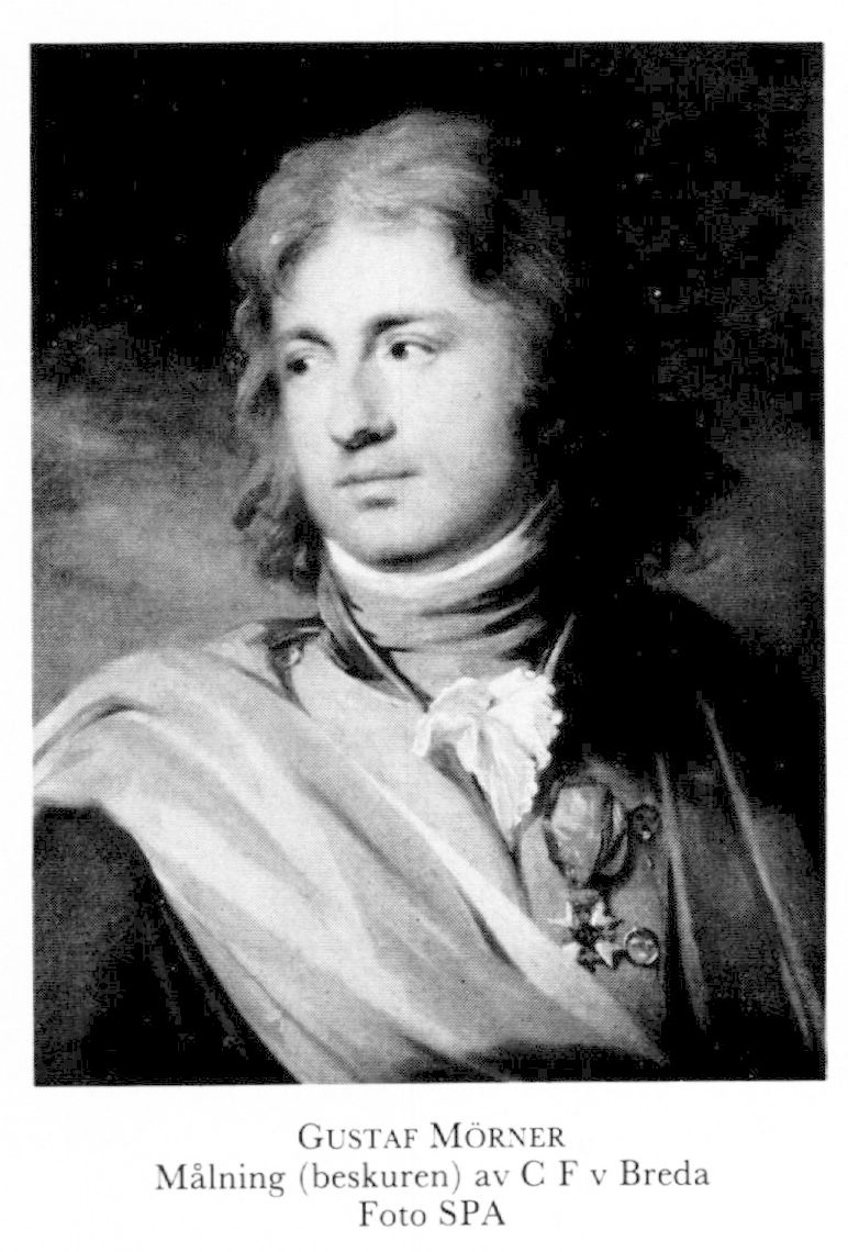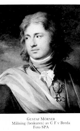 9 Mörner, Gustaf Fredrik, bror till M 7, M 8 o M 11, f 11 okt 1768 i Lekaryd, Kron, d 19 jan 1841 i Västra Ny, Ög. Sergeant vid Sprengtportenska reg 9 juni 76, fänrik vid amiralitetet 29 aug 82, officersex juli 84, löjtn 21 juli 88, kavaljer hos hertig Karl 89, kapten vid örlogsflottan 17 juli 90, kapten vid Göta gardesreg 15 juni 93, kammarherre hos änkedrottn Sofia Magdalena 2 nov 95, sekundmajor vid Göta gardesreg 3 febr 96, premiärmajor 13 maj 96, överstelöjtn i armén 16 okt 96, överstelöjtn vid nämnda reg 23 mars 97, kammarherre hos drottn Fredrika 97, överste i armén o sekundchef för Livgrenadjärreg:s rothållsdiv 11 okt 02, kabinettskammarherre hos Karl XIII 8 juni 09, deltog i riksdagarna 10, 17–18, 28–30 o 34–35, överste för Livgrenadjärreg 5 febr 11, generalmajor 26 jan 13, chef för Första infanteribrigaden 11 juni 16–14 febr 26, generallöjtn 4 juli 23, ståth på Rosersbergs slott 11 maj 26. – LKrVA 99, HedLKrVA 20, serafimerriddare 28 jan 37.