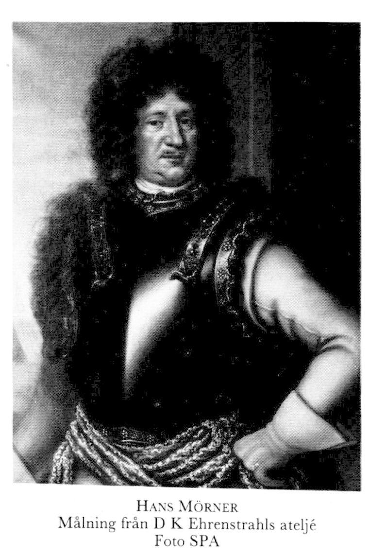 4 Mörner, Hans Georg, son till M 2 i dennes första g, f 24 juni 1623 (X 18), d 11 aug 1685 i Jönköping, Kristina. Ryttare vid ett tyskt kavallerireg i sv tjänst 44, kornett vid översten Gustav Horn Evertssons kavallerireg hösten 44, ryttmästare vid generalmajoren Robert Douglas' kavallerireg 45, generaladjutant för vänstra flygeln 47, kammarherre hos hertig Karl Gustav 52, överstelöjtn:s titel 52, överstelöjtn o chef för konungens garde-du-corps 55–57, hovmarskalk 56, överste för Smålands kavallerireg 57–72, deltog i riksdagarna hösten 60, 64, 68, 72, 78, 80 o 82–83 (led av flera utsk o delegationer, bl a SU 80 o 82—83), generalmajor av kavalleriet 10 dec 69, landsh i Jönköpings län 13 maj 72, frih 5 aug 74, generallöjtn av kavalleriet 8 okt 74, guvernör över Alvsborgs län o överkommendant i Gbg sept 76, guvernör över Kalmar län o Kronobergs län 22 okt 79, över Jönköpings län o Kronobergs län från 26 nov 80.