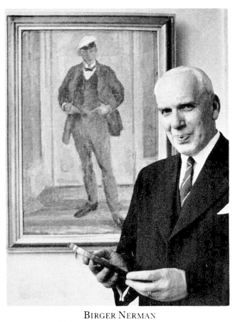 2 Nerman, Birger, bror till N 1, f 6 okt 1888 i Norrköping, S:t Olai, d 22 aug 1971 i Sthlm, Osc. Mogenhetsex vid hal i Norrköping 10 juni 07, inskr vid UU 19 sept 07, FK där 31 mars 10, bibliotekarie vid Östgöta nation 12, FL vid UU 16 sept 12, disp 7 maj 13, FD 31 maj 13, doc i nordisk o jämförande fornkunskap med nordisk sagohist 20 okt 19, allt vid UU, led av Centrala hjälpkomm för det hungrande Ryssland 21–22, sekr i Upplands fornminnesfören 21–23, prof i nordisk o estnisk arkeologi vid univ i Dorpat 2 maj 2325, anställd vid Statens hist museum 26, led av styr för Sv-estniska fören 28, sekr i Sv fornminnesfören 2939, ordf där 3969, led av styr för Sthlmsavd av Riksfören för svenskhetens bevarande i utlandet 2941, av styr för Sv-litauiska fören 31, initiativtagare till Baltiska inst 31, v ordf i Sv-lettiska fören 33, dir vid Statens hist museum 31 aug 3831 okt 54, ordf i baltiska komm 43, v ordf i Djurgårdens hembygdsfören 47, ordf där 50. — LVHAA 46.