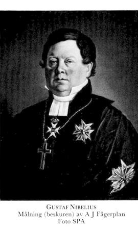 Nibelius, Gustaf, f 18 juni 1789 i Grangärde, Kopp, d 14 juli 1849 i Strömstad (enl db för Västerås). Föräldrar: kh kontraktsprosten Simon N o Christina Ulrica Boethia. Inskr vid UU 21 mars 97, FK 11 dec 11, mag o gratist 15 juni 12, allt vid UU, informator i England 12–17, biträdande legationspredikant vid sv förs i London 13-15, TK vid UU 8 dec 17, prästv i Västerås 7 juli 18, doc i dogmatik o moralteologi vid UU 26 aug 19, TL där 31 maj 20, lektor i filosofi vid gymn i Västerås 19 juni (tilltr 28 sept) 22, rektor där 23–24, 28–29 o 33–34, kh i Hubbo, Vm, 28 febr 27, i Skerike, Vm, 14 mars 28 (tilltr 1 maj 29), prost där 1 maj 29, utnämnd till TD 6 nov 30, promoverad vid UU 14 juni 31, led av ele-mentarlärov:srevisionen 32, kh i Fellingsbro, Vm, 31 aug 33 (tilltr 35), deltog i riksdagarna 34–35, 40–41, 44–45 o 47-48 (led av allm besvärs- o ekonomiutsk 34—35, ecklesiastika pastoralutsk 34—35, förstärkta statsutsk 34–35, 40–41 o 44–45, förstärkta bankoutsk 34-35, 40–41 o 44–45, ecklesiastika lagutsk 34-35, KU 34-35, KU 34-35, 40-41 o 44–45, förstärkta allm besvärs- o ekonomiutsk 40–41, förstärkta lagutsk 44–45), revisor i bankodiskontverket 36, biskop i Västerås stift från 19 okt 39 (tilltr 12 jan 40), ordf i komm ang pensionsinrättn för ecklesiastikstatens änkor o barn mars–dec 46. — Ogift.