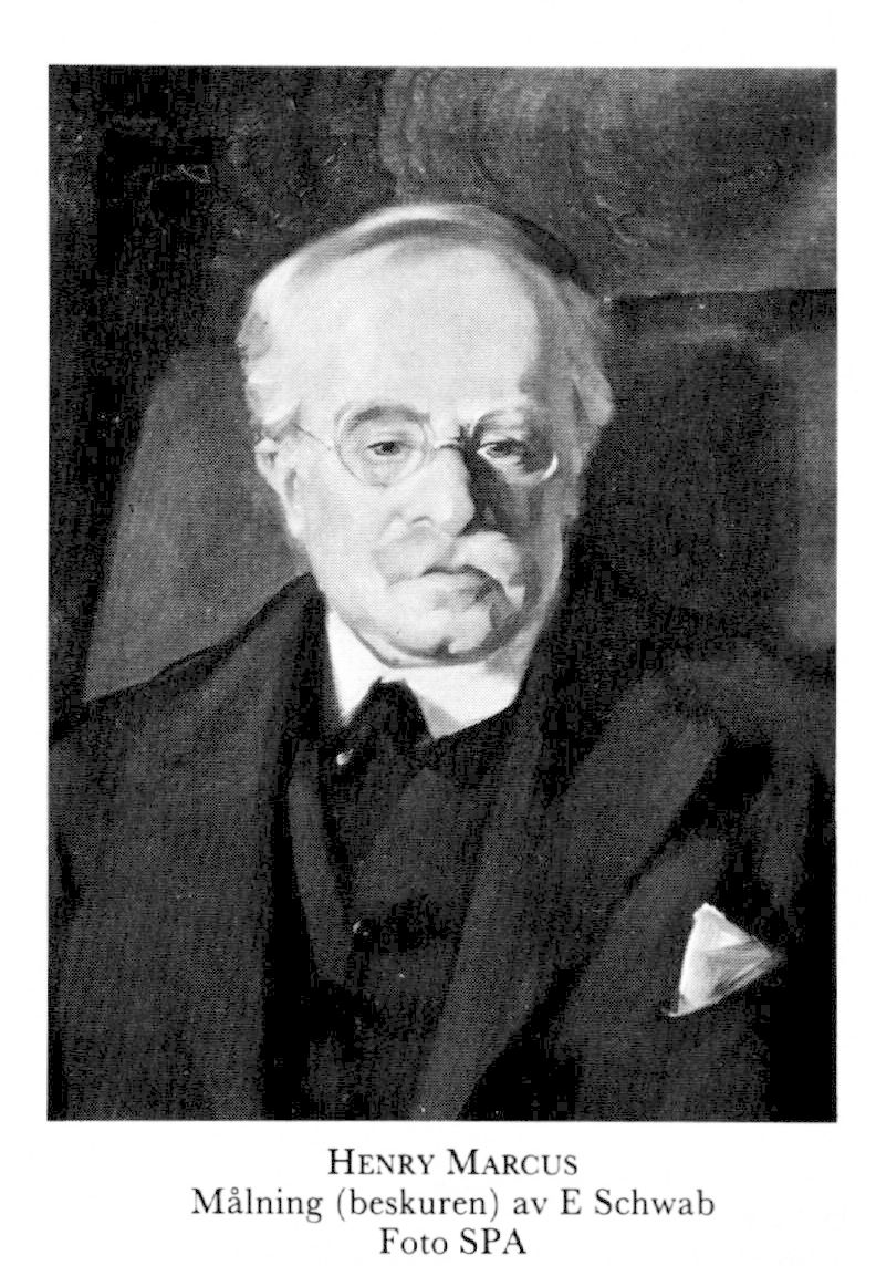 1 Marcus, Henry Isac, f 2 maj 1866 i Sthlm, Mosaiska, d 30 april 1944 där, Engelbr. Föräldrar: grosshandl Leopold Moritz M o Gelly Adelaide Jacobsson. Mogenhetsex vid södra latinlärov i Sthlm 23 maj 83, inskr vid UU 5 sept 83, med fil ex där 14 sept 85, inskr vid KI 23 sept 85, MK där 19 jan 89, amanuens vid Serafimerlasarettets neurologiska klinik 1 mars–30 nov 91 o 10 juni 93–31 mars 95, vid KI:s patologisk-anatomiska instit 1 dec 91–30 nov 92, ML vid Kl 16 febr 95, överläk vid Solna sjukhems vårdanst för sinnessjuka jan 96–37, disp vid KI 2 maj 03, MD vid LU 29 dec 03, doc i psykiatri vid KI 31 dec 03, läk vid o led av styr för Margarethahemmet i Sthlm 13, uppehöll del av ord professuren i nervsjukdomar vid KI 17–20, doc i psykiatri o neurologi där 31 maj 20, prof:s n h o v 22 juni 21, bitr läk vid Serafimerlasarettets nervpoliklinik 24 aug 21–23 sept 23, förest för neurologiska avd där 24–31, tf prof i nervsjukdomar vid KI 25 sept 23, ord 16 maj 24–3 maj 31, ordf i Sv läkare sällsk:s sektion för psykiatri o neurologi okt 24–33, led av arméförvaltn:s vetensk råd 24, förest för Arbetsstugan för nervsjuka i Sthlm 31, led av med: styr:s vetensk råd 31–35, verksam vid laboratoriet för hjärnforskn vid S:t Eriks sjukhus 31. G 24 mars 1896 i Gbg, Mosaiska, m Kerstin Friedländer, f 22 maj 1874 där, ibid, d 11 okt 1955 i Sthlm, Hedv El, dtr till grosshandl Svante F o Sigrid Schlesinger.