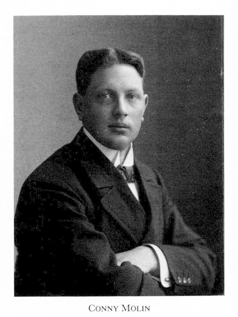 Molin, Georg Conny Hjalmar, f 9 nov 1885 i Norra Sandsjö, Jönk, d 30 sept 1943 i Solna (enl db för Bromma, Sthlm). Föräldrar: byggmästaren Frans Johan M o Emilia Sophia Nilsdtr. Elev vid folkskolesem i Linköping 1 sept 02, ex där 11 juni 07, elev i sång vid musikkonservatoriet i Sthlm sept 07, elev vid operaskolan där sept 09–vt 12, debuterade på K teatern 11, studier för bl a Raimond v Zur Mühlen i London, engagerad vid K teatern 15-40.