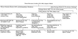 I äktenskap med en dotter till domprosten Samuel Lemchen (bd 22, s 521) var Johan M morfar till professor Salomon Eberhard Henschen (bd 18) och far till Peter Samuel M (1804–60). Samuel M blev i Lund magister 1826 och docent i kemi 1829 samt var från 1832 till sin död adjunkt i fysik där. Han skrev bl a 9 avhandlingar i den tyske fysikern J C Poggendorffs Annalen der Physik und Chemie 1834–46, huvudsakligen rörande ämnen inom elektricitetslärans område. I en av dessa, Versuche über die Fähigkeit starrer Körper zur Leitung der Elektrizität (Annalen, 34, 1835) beskrev M ett fenomen, som snart föll i glömska men upptäcktes på nytt 1890 av den franske fysikern E Branly och fick betydelse för trådlös telegrafi och radio. En kritisk recension av J Berzelius (bd 4) av en av M:s avhandlingar i Poggendorffs tidskrift ledde till en skarp skriftväxling med denne 1836, och då M 1847 jämte ett par av dennes lärjungar sökte professur i kemi i Lund, blev han ej uppförd på förslag. Han var också musikalisk och publicerade i VAH 1847 (tr 1849) Försök att grundlägga ett nytt tonsystem (med 19 tangenter inom oktaven i stället för de vanliga 12). 1850 blev han LMA.