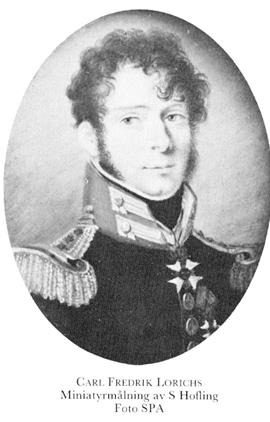 2 Lorichs, Carl Fredrik, f 4 febr 1780 i Sthlm, Klara, d 6 okt 1851 där, Konungens andra livgardes förs. Föräldrar: landshövdingen Nils L o Maria Charlotta Hassel. Kvartermästare utan lön vid Södra skånska kavallerireg 8 juli 80, fänrik vid Tavastehus reg 14 dec 86, stabsfänrik vid Änkedrottningens livreg (senare Göta garde o Andra gardet) 24 april 91, sekundlöjtn vid Livreg: brigadens lätta infanteri 30 juni 93, premiärlöjtn där 6 mars 94, stabskapten vid Livreg:s värvade infanteri 12 juni 00, kapten o reg:kvartermästare vid Göta garde 25 nov 01, kompanichef där 29 mars 02, tredje major vid Andra gardet 19 juni 10, andre major 20 nov 10, förste major 14 maj 11, överstelöjtn i armén 14 jan 12, överste där 19 jan 14, överstelöjtn o sekundchef för Andra gardet 4 juli 17, generaladjutant i armén 11 maj 18, generalmajor i armén 4 juli 23, led av komm ang ackorden vid de värvade reg:na april 33, ständig ordf i dir över Allm garnisonssjukh 33, förste adjutant hos Karl XIV Johan 24 juni 34, tf ordf i krigshovrätten 11 aug 37, överkommendant för Sthlms garnison 28 maj 38, generallöjtn i armén 1 dec 39, led av komm ang livgardesreg:nas avlöning jan–febr 41. – LKrVA 18, HedLKrVA 28. – Ogift.