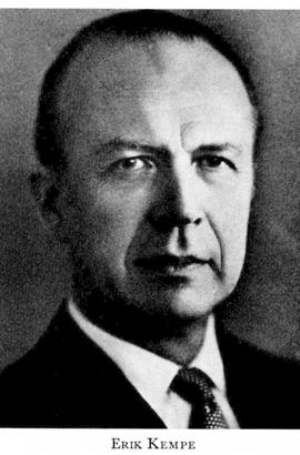 7 Kempe, Frans Olof Erik, son till K 5, f 15 juli 1898 på Drafle, Hemsö, Vnl, d 16 juni 1959 i Falun (enl db för Själevad, Vnl). Studentex vid Nya elementarskolan i Sthlm vt 17, inskr vid UU 3 sept 17, FK där 30 maj 19, FL 29 maj 23, disp 3 nov 23, FD 31 maj 24, anställd vid ab Robertsfors 24, VD, disp o led av styr för Asträsks ångsågs ab 27, för ab Robertsfors 28...