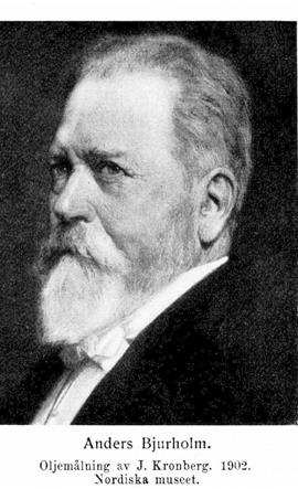 Bjurholm, Anders, f. 11 febr. 1826 i Österhaninge, d 1 sept. 1913 i Stockholm. Föräldrar: klockaren Anders Bjurholm och Greta Andersdotter. Lärling vid broderns, Per Bjurholm, bryggeri nov. 1844; förvärvade burskap som bryggeriidkare sept. 1852. Bryggare i Stockholm okt. 1852–73; ledamot av Stockholms stadsfullmäktige 1870–75 och 1884–90 och av drätselnämnden 1873–75; verkställande direktör ...