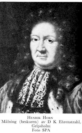 5 Horn, Gustav, bror till H 4, f 22 okt 1592 på Örbyhus, Vendel, Upps, d 10 maj 1657 i Skara, begr i Sthlm, Jak. Vistades vid utl univ 09—12, i sv krigstjänst 12—14, utl studieresa 14—18, k kammarherre 18, överste för ett norrländskt reg 21, riksråd 2 april 25, riddare s d, fältmarskalk o högste befälhavare i Livland 20 april 28, kommenderande general över trupperna i Pommern o Neu...