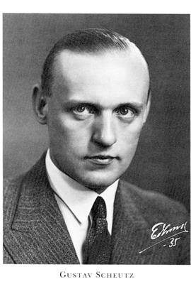2 Scheutz, Gustav, f 28 nov 1900 i Alguts-boda, Kron, d 18 maj 1967 i Sthlm, Hedv El. Föräldrar: bruksägaren Abdon Elof Ludvig Willehad S o Ada Lovisa (Louise) Gråberg. Studentex som privatist i Sthlm 24, studier vid Handelshögskolan där 25–27, vid Pitman's College, London, led av styr för Svensk-engelska film ab från 28, VD där från 30, VD o led av styr för ab Europa film från 30, för ab Eu...