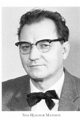Matsson, Niss Hjalmar Matthias, f 16 maj 1905 i Malung, Kopp, d 27 febr 1973 i Mora, Kopp (enl db för Malung). Föräldrar: skinnskräddaren Niss Mats Persson o Marit Henriksdtr. Elev vid bl a Malungs folkhögsk 21–24, vid Mariannelunds praktiska skola, Jönk, ht 24, vid Uppsala h a l, studentex där 19 maj 28, inskr vid UU 24 sept 28, upptecknare för Landsmåls- (från 1970 Dialekt-) o folkminnesar...