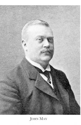 May, Johan (John) Gustaf, f 3 nov 1860 i Sthlm, Klara, d 22 jan 1935 där, Engelbr. Föräldrar: vaktmästaren Albrecht Adolf Wahlström o Anna Catharina Håkansson (omg m notarien Charles Henry May). Ex från Frans Schartaus handelsinst, Sthlm, 77, anställd vid Eugene Samsons försäknbyrå där 77—81, kamrer i olycksfallsförsäkr:ab Fylgia 81—02, sekr i Filharmoniska sällsk 87—91, utg av Meddelanden a...
