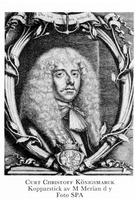 5 Königsmarck, Philip Christoph, bror till K 4, f 4 mars 1665 i Stade, Niedersachsen, mördad trol natten till 2 juli 1694 i Hannover. Studier i Oxford o London 80—82, överste vid Nils Bielkes reg, i hannoversk tjänst 89, deltog i venetiansk tjänst i fälttåget på Morea 89—90, deltog i Nederländernas krig med Frankrike 92, generalmajor i kursachsisk tjänst ...