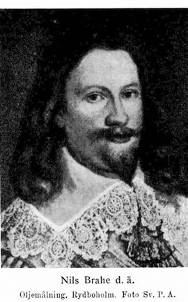 9. Nils Brahe d. ä., broder till B. 7 och 8, f. 14 okt. 1604 på Rydboholm, d 21 nov. 1632 i Naumburg i Tyskland. Greve till Visingsborg, friherre till Rydboholm och Lindholmen, herre till Sesswegen. K. page 31 aug. 1620; student vid universitetet i Leyden 11 dec. 1623−1624. Kammarjunkare 1625; fänrik vid von Thurns kompani av hovregementet före nov. s. å; deltog i Gustav...