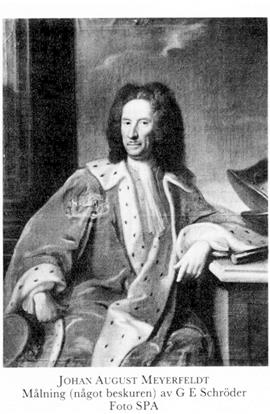 1 Meyerfeldt, Johan August, f 1666 (Frih:-brev) i Livland (Stiernman, s 44 f), d 10 nov 1749 i Sövde, Malm. Föräldrar: överinspektorn o överstelöjtnanten Andreas Meyer, adl M, o Catharina Wolff. Volontär vid v Pahlens livländska kavallerireg 83, kornett där 10 jan 86, löjtn där 2 febr 89–28 april 93, kapten vid Hastfers sv infanterireg i Holland 10 nov 93, major vid Krassows reg där 24 jan 9...