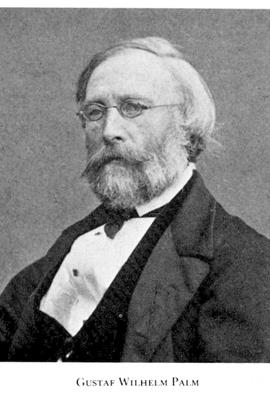 Palm, Gustaf Wilhelm, f 14 mars 1810 i N Åsum, Krist, d 20 sept 1890 i Sthlm, Klara. Föräldrar: underofficeren Adolf Wilhelm P (Sv biogr lex) o Christina Ulrika Bergström. Elev vid FrKA 28–37, bosatt i Rom juli 41–dec 51, tillfällig lär vid FrKA:s elementarteckn:skola 17 dec 59, ord lär där 7 mars 60–dec 78, v prof i teckn vid FrKA 27 aug 81. Konstnär. – Agré vid FrKA 45, LF...