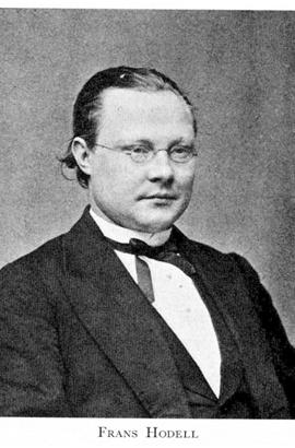 1 Hodell, Frans Oskar Leonard, f 13 aug 1840 i Sthlm, Kat, d 25 maj 1890 på Lämshaga, Ingarö, Sth. Föräldrar: bagarmästaren Carl Oskar H o Sofia Charlotta Dahlbom. Apotekselev i Sthlm, farm studex 58, debuterade på A Selinders elevteater 12 april 60, tillhörde A Selinders teatersällsk 60— 65, verksam vid Södra teatern 65—70, red för Söndags-Nisse från 70, denna tidn:s ägare från 81. Lustspel...