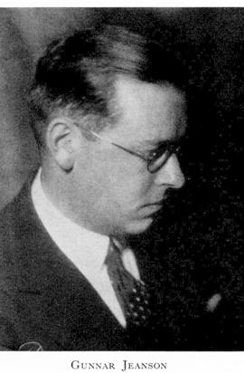 Jeanson, Bo Gunnar, f 10 okt 1898 i Gbg, Domk, d 20 jan 1939 i Sthlm., Hedv El. Föräldrar: insp Gustaf Mauritz J o Alma Göthilda Jörgensen. Studerade piano vid musikkonservatoriet 13—18, kontrapunkt 17 —20, studentex vid Whitlockska skolan vt 17, inskr vid UU ht 17, FK där 15 dec 21, studier i Wien 21—22, FL vid StH 25 april 25, sekr vid Konsertfören, Sthlm, 25—30, disp 1 ma...