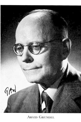 Grundel, Arvid Filip, f 1 aug 1877 i Filipstad, d 16 okt 1959 i Sthlm (Matt). Föräldrar: urmakaren Johan Ludvig G o Carolina Gadde. Anställd vid Nya Kristinehamns-Posten 84—96, vid Nerikes Allehanda 96— 99, vid Öresundsposten 99—02, tjänsteman vid Frisinnade landsfören 02, led av dess verkst utsk 02—23, ombudsman 09—23, led av centralstyr för Sv freds- o skiljedomsfören 05—09, ombudsman o ka...