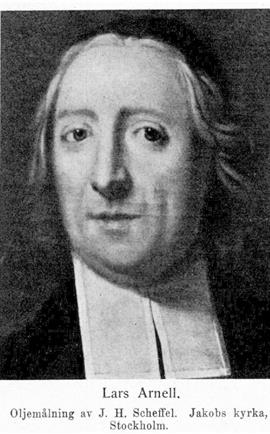 2. Lars Arnell, den föregåendes son, f. 23 mars 1689, d 5 jan. 1742. Student i Uppsala 11 nov. 1703; disp. 12 juni 1711 över av honom själv författad avhandling och 13 maj 1713 (Deoccultatione scientiarum, pres. J. Steuchius); fil. magister s. å.; företog utrikes resor 1715—21, 1722. V. pastor, i franska församlingen i Stockholm 8 apr. 1721; sekreterare i ecklesiastikdeputatio...