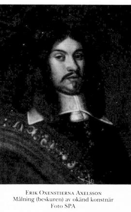 9 Oxenstierna, Erik, Axelsson, son till O 6, f 13 febr 1624 i Jäder, Söd, d 23 okt 1656 i Frauenburg, (Ost)Preussen (nu Frombork, Polen). Inskr vid UU mars 33 — febr 43, resa till Tyskland, Nederländerna, Frankrike o Italien juli 43 —okt 45, överkammarherre hos drottning Kristina senast jan 46, guvernör i Estland 23 juli 46, deltog i riksdagarna 50 o 55, generaldir...