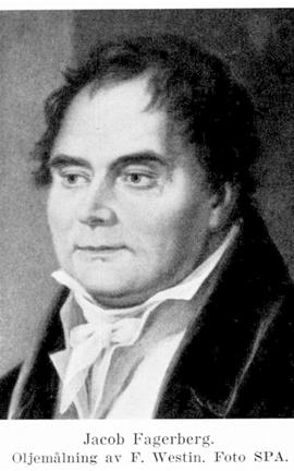 Fagerberg, Jacob Pehrsson, f. 22 dec. 1769 i Askeryds sn (Jönk.), d. 21 okt. 1830 i Stockholm (Klara). Föräldrar: torparen Pehr Pehrsson och Lisken Gunnarsdotter. Inflyttade till Stockholm 1785; i sadelmakarlära 25 nov. 1786; gesäll 17 dec. 1791; gesällvandring till S:t Petersburg 1794, återvände till Stockholm 1797, i England 1798–1801; styckmästare 1802; burskap i Stockholm som sadelmakare...