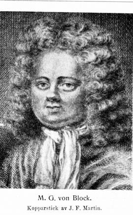 Block, Magnus Gabriel von, f. 25 apr. 1669 i Stockholm, d 16 apr. 1722 i Söderköping. Föräldrar: hovpredikanten, kyrkoherden i Riddarholmsförsamlingen i Stockholm Martinus Blockius och Ursula Lilliestierna. Student i Uppsala 23 okt. 1679; reste utan att ha avslutat sina studier utrikes 1692; kabinettssekreterare, tolk och anagnost hos hertigen av Toskana 1696−98; återvände därpå över Wien ti...